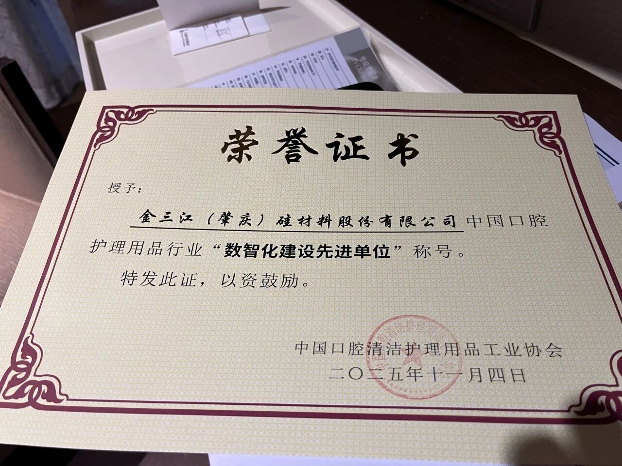At the conference, units and individuals who achieved remarkable results in intelligent manufacturing transformation and digital transformation in 2025 were commended. Thanks to its solid practices in digital intelligence, Jinsanjiang (Zhaoqing) Silicon Materials Co., Ltd. (JSJ) was awarded the title of “Advanced Unit in Digital Intelligence Construction” in China’s oral care products industry.