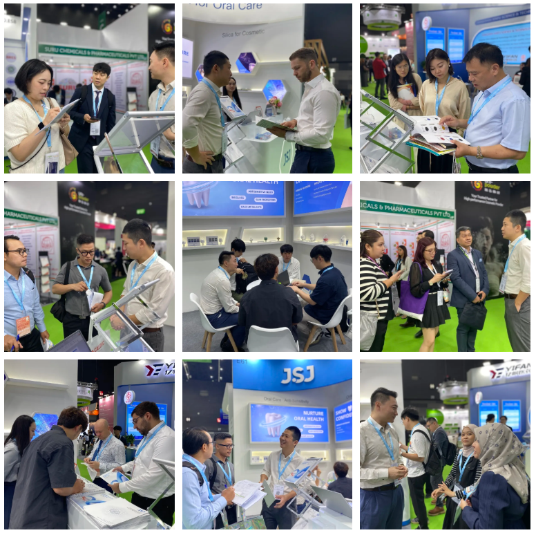 Throughout the exhibition, the JSJ booth maintained a high level of popularity. Visitors not only meticulously observed and experienced the texture and characteristics of the core products up close but also engaged in in-depth consultations regarding customized solutions for the oral care and cosmetics sectors. The technical advantages and application prospects of the products generated intense interest.