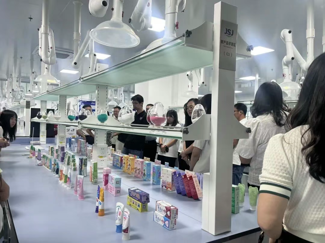 The visiting team was divided into two groups, arriving at the company at different times. They first toured the corporate exhibition hall, where they learned about JSJ’s development history, the characteristics of its core product—functional silica—and its applications in various fields such as toothpaste, silicone rubber, food and cosmetics, batteries, and tires.