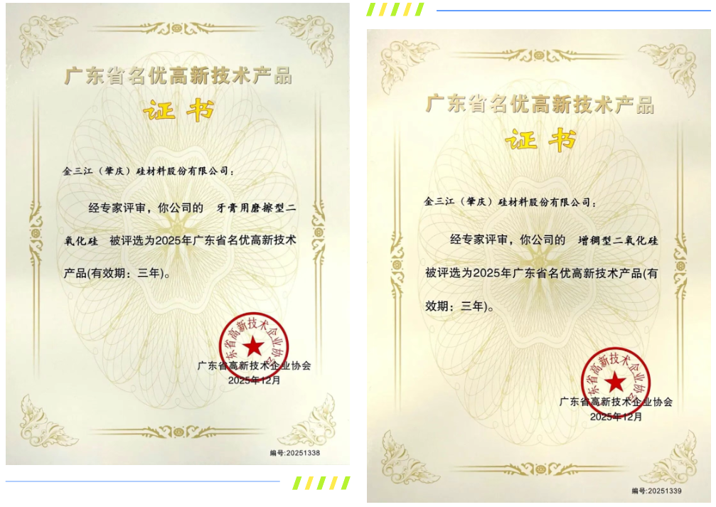 Additionally, our toothpaste-use abrasive silica and thickening silica were rated as “2025 Guangdong Famous High-Tech Products.”