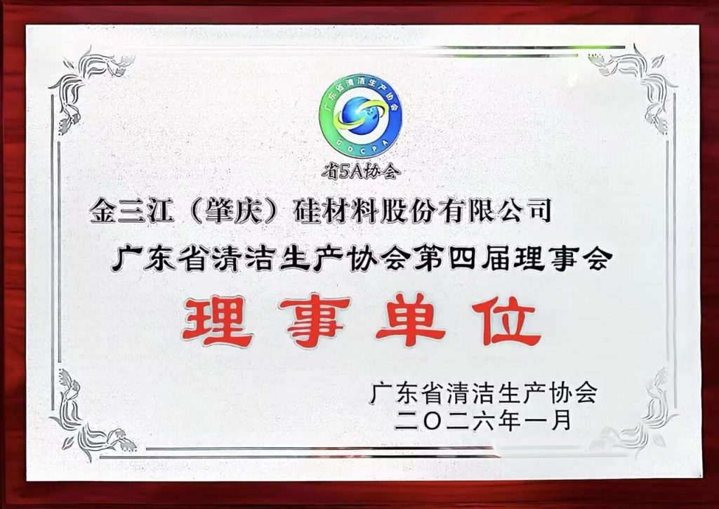 Recently, Jinsanjiang (Zhaoqing) Silicon Materials Co., Ltd. (JSJ) was officially elected as a Council Member of the Fourth Council of the Guangdong Cleaner Production Association. This honor signifies strong recognition from industry associations and society for our long-term practices and contributions in green production and energy conservation/environmental protection.